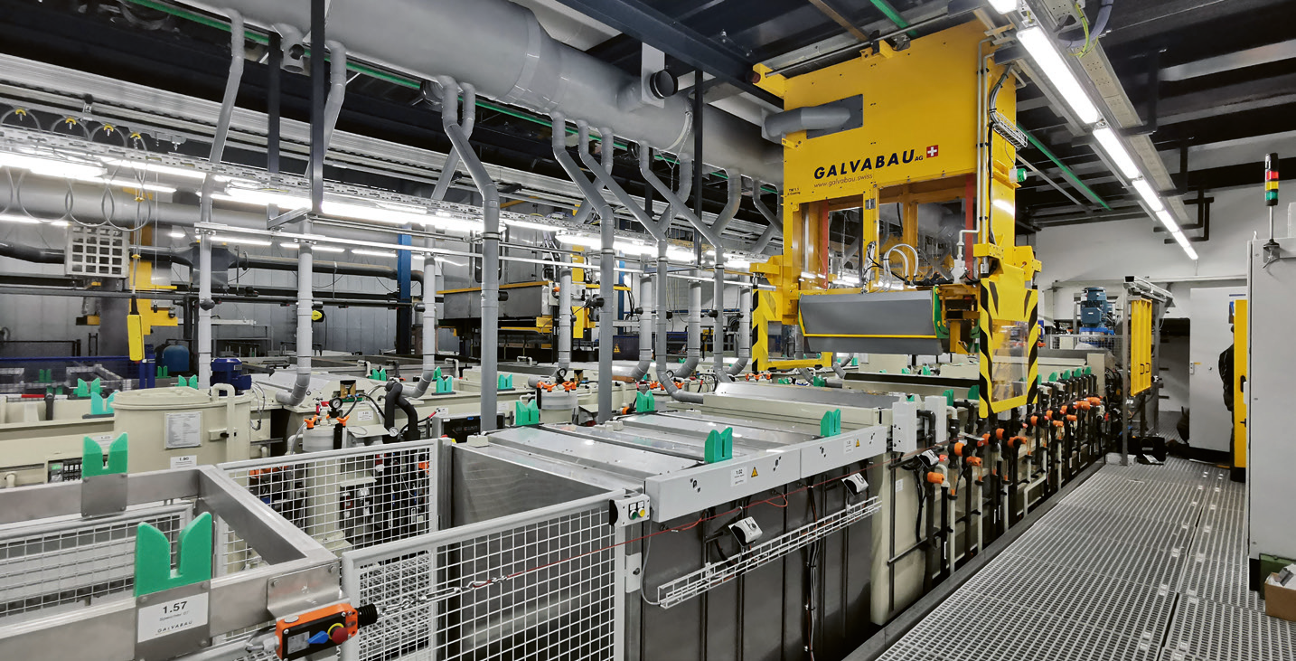 GALVABAU lieferte für Pilatus zwei neue Galvanikanlagen mit erstmals eingesetztem Zink-Nickel- und KTL-Verfahren. Die Anlagen wurden zweigeschossig und direkt neben der bestehenden Eloxalanlage bei laufender Produktion installiert. Be- und Entladung im Erdgeschoss, Materialfluss über zusätzliche Plattform durch mehrere Prozessbäder. Dank eines geschlossenen Kreislaufsystems (« Closed-Loop-System ») wird die Abwasserbelastung minimiert. Beide Anlagen mit Baddeckel, Wagenabsaugung, Tropfschalen und innovativem Personenschutz. High-Tech-Steuerung erfüllt höchste QR-Anforderungen.