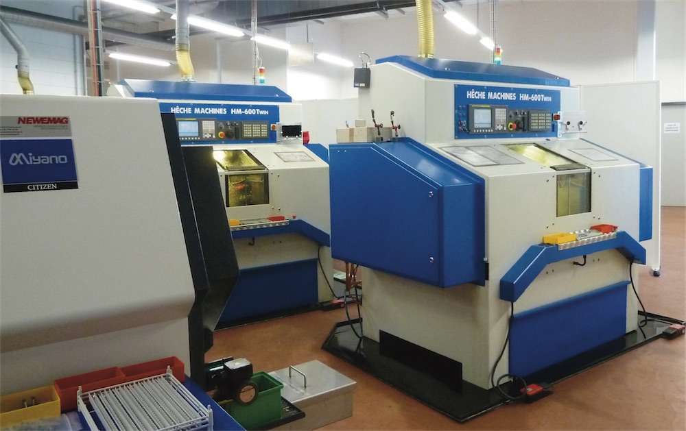 Actuellement, deux secteurs sont dédiés à la fabrication de composants en acier, en inox et en laiton: une halle de 2400 m2 et une autre de 1400 m2, une troisième étant réservée exclusivement à l’usinage des métaux précieux (or et platine), avec une quinzaine de machines occupant une surface de 1400 m2 également.
