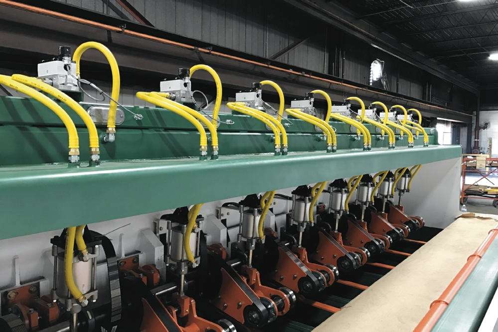 Les grandes installations à haute vitesse trient automatiquement des milliers de planches finies en piles ou en lots, destinées au stockage ou à l’expédition. Les trieuses Baxley, également dotées de vérins et de distributeurs AVENTICS, sont équipées de 15 à 100 compartiments. Des convoyeurs acheminent le bois découpé vers la trieuse. Lorsqu’une planche d’une taille spécifique atteint le compartiment adéquat dans la trieuse, un dispositif de basculement actionné par un vérin TRB ouvre la zone et la planche tombe dans le compartiment. L’ouverture est refermée pour que la planche suivante puisse être transportée dans la trieuse vers le compartiment adéquat.