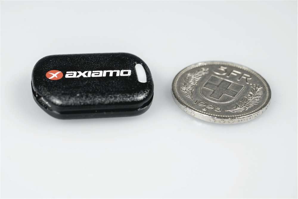 La puce intégrée mesure, en dix degrés de liberté, l’accélération 3D, la rotation et le champ magnétique terrestre, ainsi que la pression atmosphérique. Elle transmet les données à un écran, puis un spécialiste évalue le déroulement des mouvements et prend, si nécessaire, des mesures contre les surcharges. Les médecins et les scientifiques du sport, les physiothérapeutes, ainsi que tous les professionnels qui s’intéressent aux données précises du mouvement des sportifs et veulent en connaître l’origine, sont considérés comme des experts actifs. Des thérapies spécifiques ou un changement du déroulement des entraînements sont des mesures contre les surcharges. Le sportif – ou le patient – porte sur le corps le petit capteur de 35 x 25 x 7 mm, pesant 8,5 g ou le fixe aux lacets de sa chaussure. Comme le capteur Axiamote ne présente aucune partie mobile, il est très résistant aux chocs et peut être utilisé dans des conditions difficiles. La batterie fonctionne plus de deux heures avec un échantillonnage continu à haute fréquence et un enregistrement dans la mémoire flash intégrée. Un boîtier en silicone protège le capteur de l’humidité en cas d’utilisation sous la pluie.