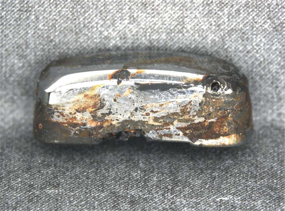 Voici un exemple de ce phénomène: l’apparition de picots de rouille sur un petit barreau en acier inoxydable dont la surface a été satinée. Des débris de la brosse ou de l’outil d’usinage sont restés incrustés sur la surface de la pièce (fig. 2).