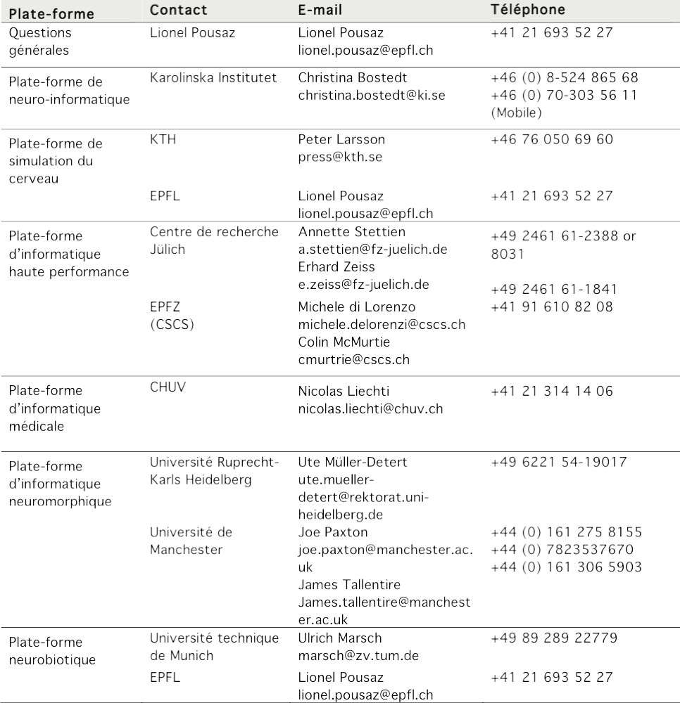 Les autres plates-formes du Human Brain Project qui n’ont pas encore été publiées à ce jour sont les suivantes: