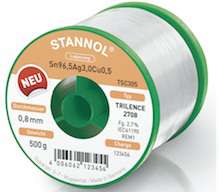 La nouvelle série de fils d’apport de Stannol a été conçue pour des tâches exigeantes dans le domaine du brasage mécanique. Le modèle TRILENCE 2708 est un fondant activé aux halogènes, exempt de colophane, basé sur une matrice de résine synthétique. Il peut être utilisé de la même manière que les fils d’apport classiques. Les intervalles d’entretien, et donc les temps d’arrêt des machines à braser sont ainsi réduits, grâce à la faible tendance aux giclures. Ces fondants offrent un très bon mouillage et des résidus clairs.