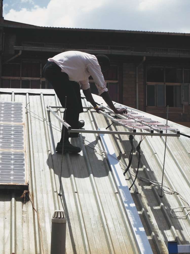 Des cellules solaires issues du projet TREASORES en cours de montage en 2013, pour des essais de longue durée dans des conditions extrêmes en Uganda. (Photo: Eight19 Ltd)