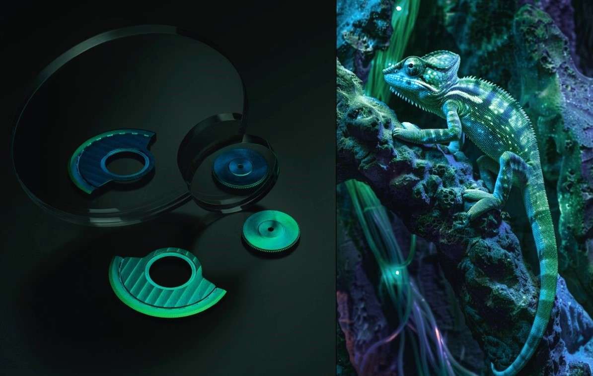 Une deuxième innovation de Positive Coating s’appelle MorphoColor : des revêtements dichroïques innovants, inspirés des couleurs changeantes du caméléon. Disponibles en Framboise Ambrée, Vert Céleste et Turquoise Violet, ces teintes évoluent selon la lumière, l’angle de vue et la finition (brossée, gravée, microbillée…). Une innovation où science et nature fusionnent : des couleurs vivantes, dynamiques, en perpétuelle transformation, pour sublimer chaque détail des pièces traitées.