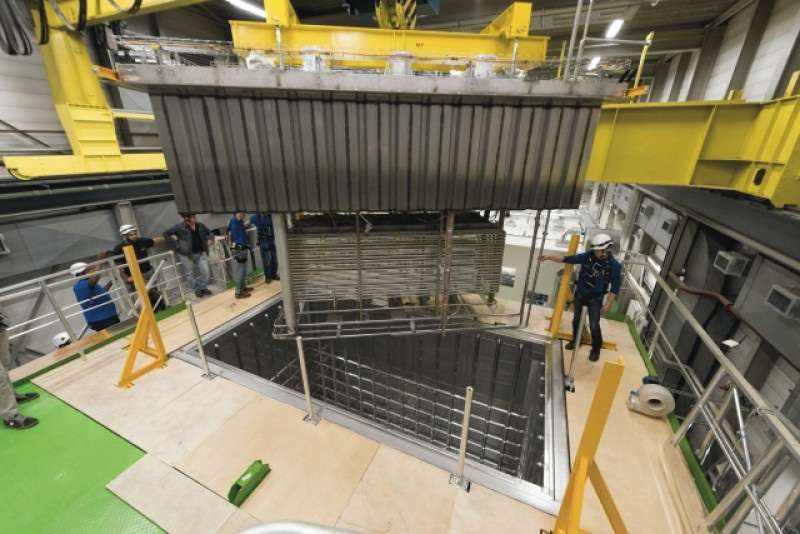 Le prototype de démonstration WA105 a récemment été placé dans le cryostat. Il est prévu qu’il soit prêt à fonctionner en octobre 2016. Il s’agira d’une étape très importante pour cette chambre DLAr-TPC, le dispositif n’ayant jusqu’ici été testé que sur des prototypes contenant un maximum de 250 l. La prochaine étape consistera à tester pour DUNE un prototype plus grand (300 t) avec des systèmes d’ingénierie à échelle réelle, dans l’annexe de l’installation de test EHN1 actuellement en construction dans la zone Nord du CERN.